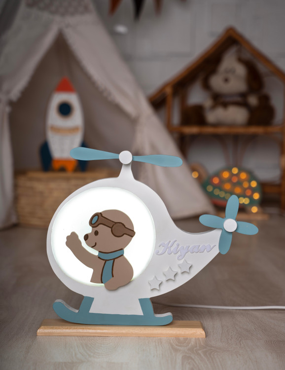 چراغ خواب کودک طرح خرس خلبان | نور ملایم و ایمن برای اتاق کودک