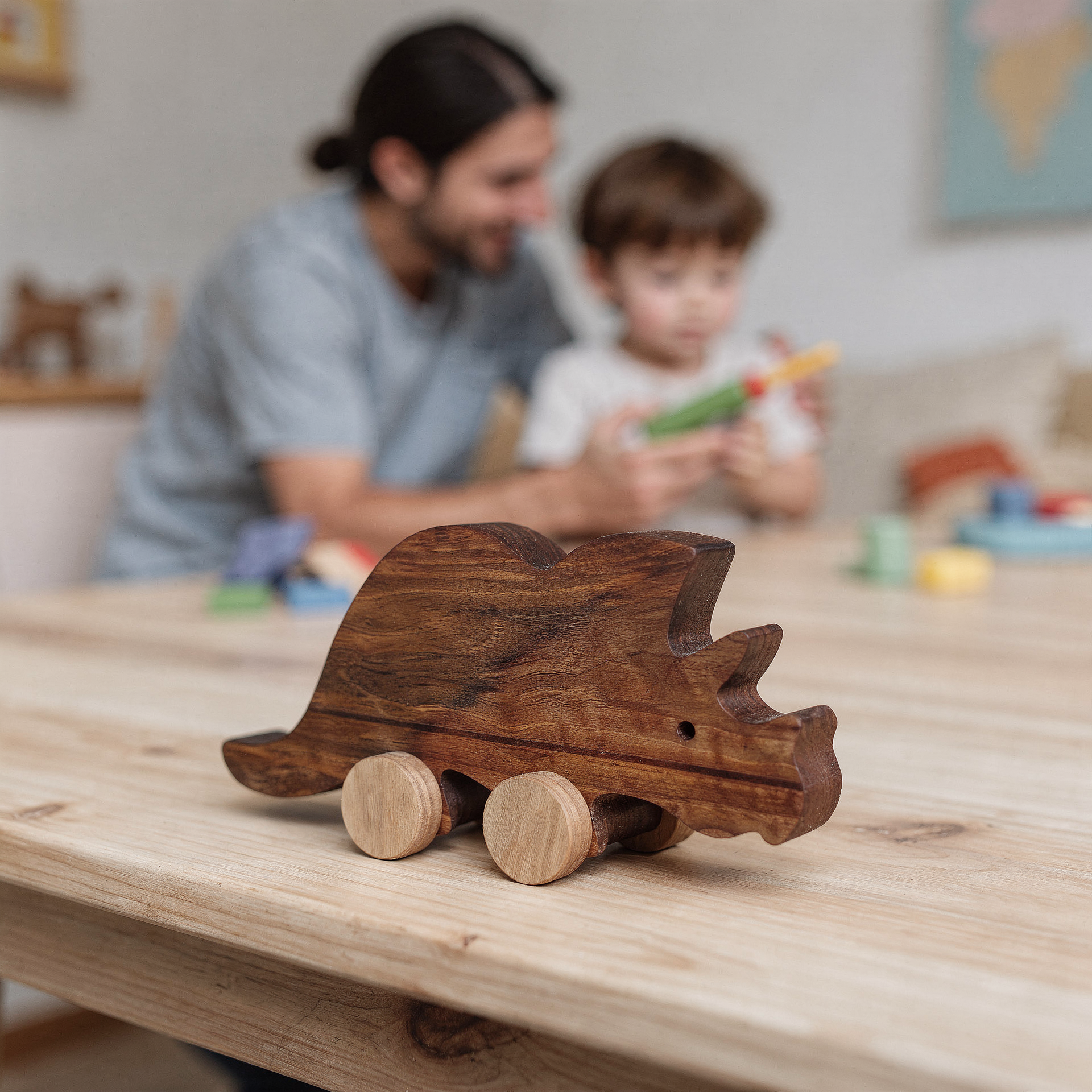 این اسباببازی با چرخهای روان، کودک را به تحرک و بازیهای تخیلی دعوت میکند و به تقویت مهارتهای حرکتی و هماهنگی دست و چشم کمک میکند. طراحی دایناسور کلاسیک در کنار رنگ گرم چوب، باعث میشود علاوه بر اسباببازی، به عنوان یک دکوری خاص در اتاق کودک نیز جلوه کند.